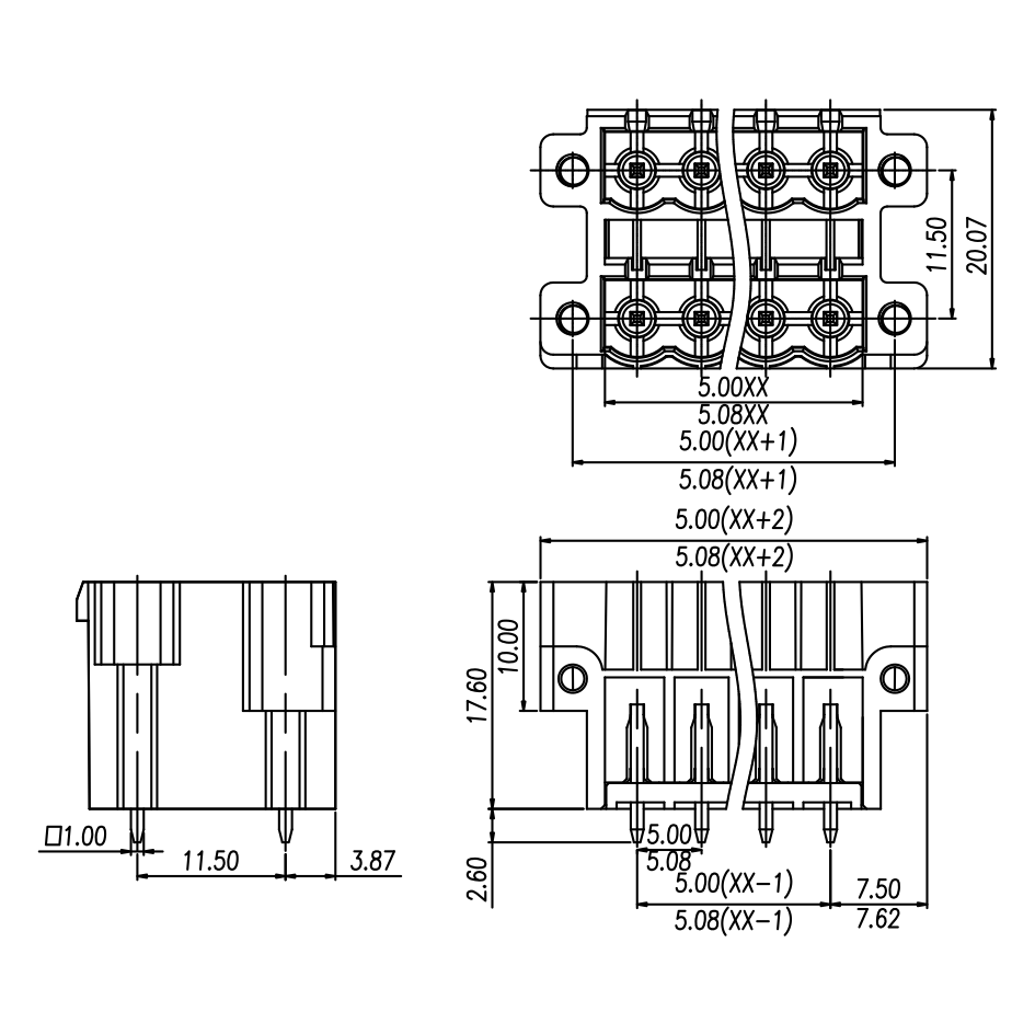 Pitch: 5.0 mm / 5.08 mm