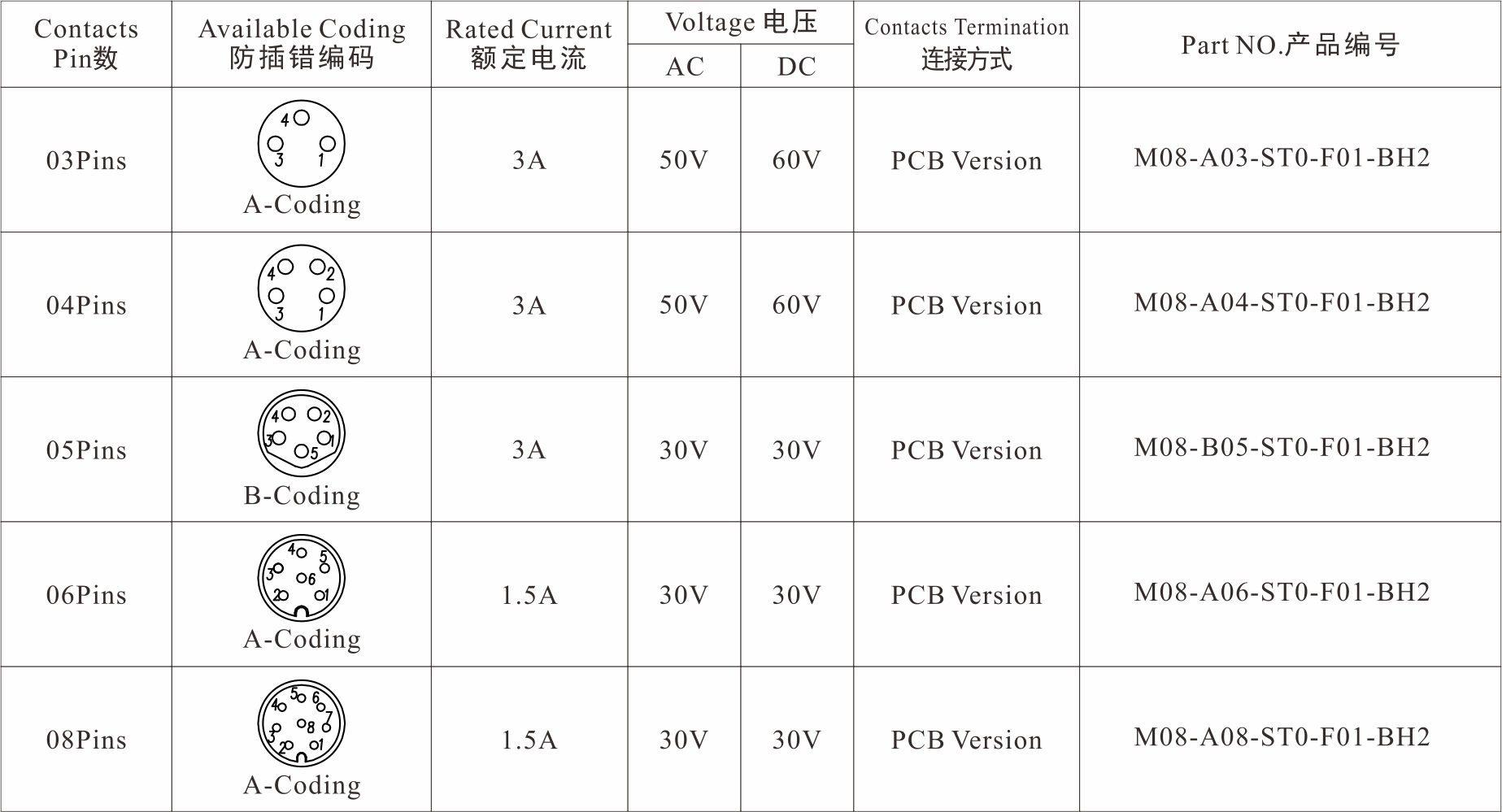 Part No 產品編碼:M08-X**-ST0-F01-BH2