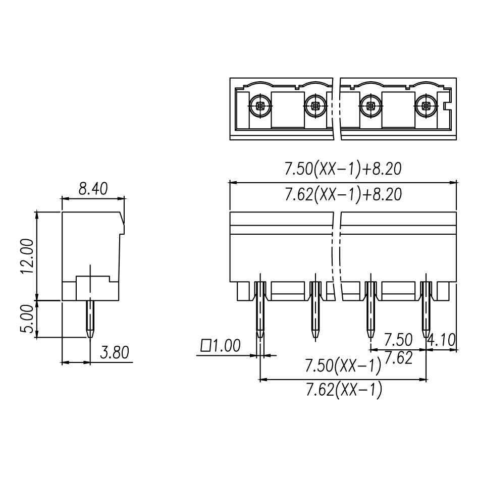 間距: 7.5 mm/7.62 mm