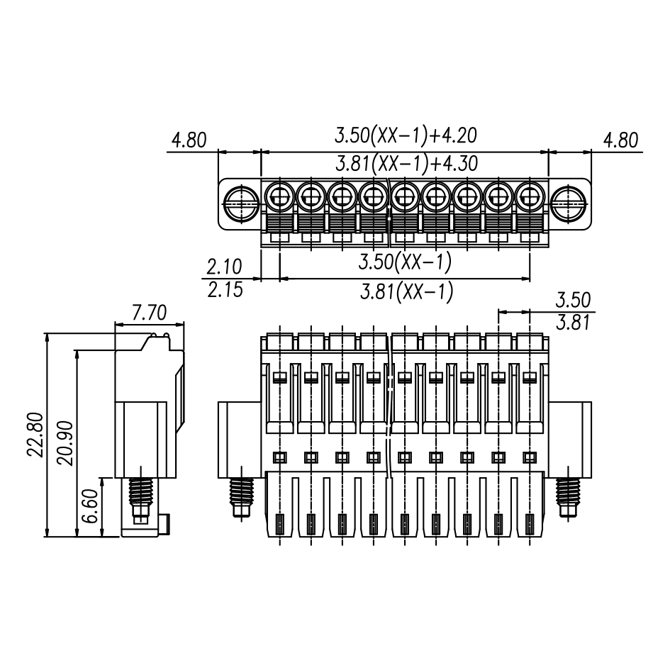 間距: 3.5 mm/3.81 mm