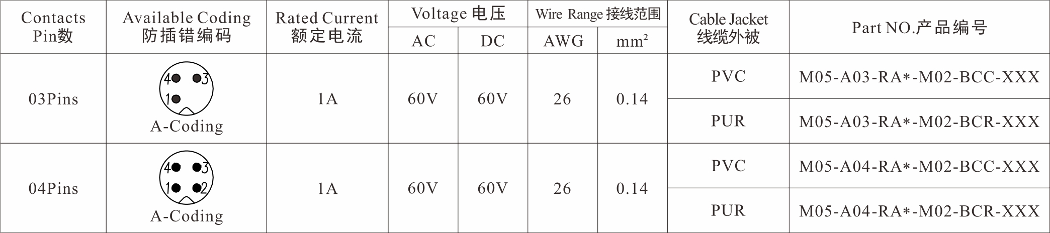 Part No 產(chǎn)品編碼:M05-A**-RA0-M02-BC*-XXX