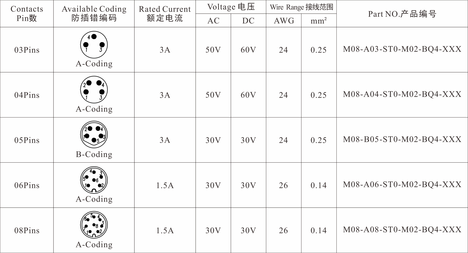 Part No 產(chǎn)品編碼:M08-X**-ST0-M02-BQ4-XXX