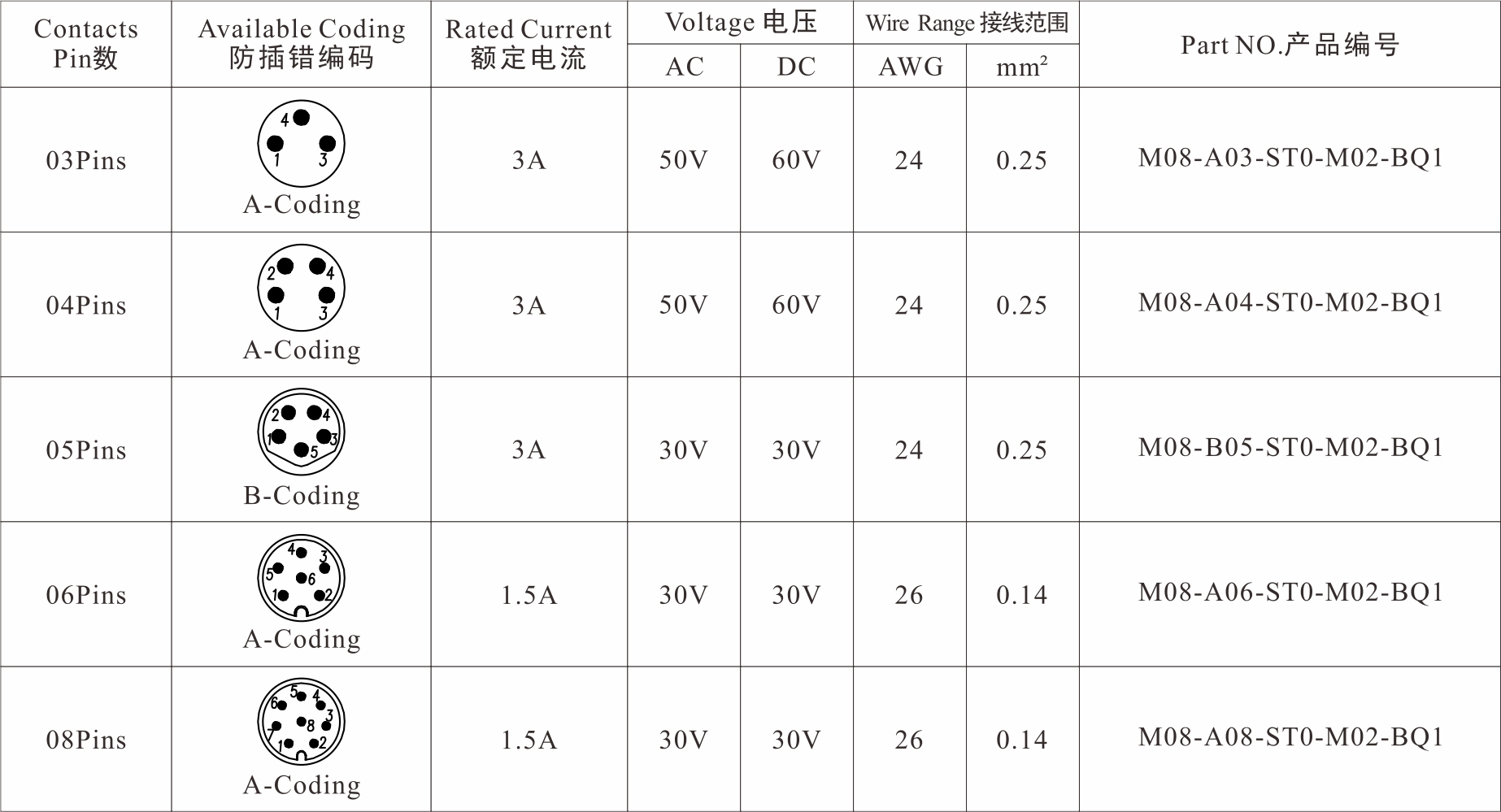 Part No 產(chǎn)品編碼:M08-X**-ST0-M02-BQ1