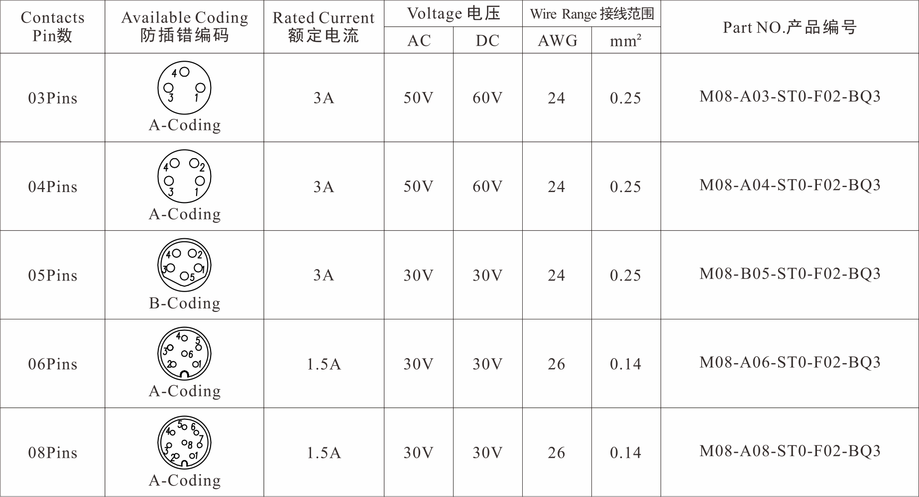 Part No 產(chǎn)品編碼:M08-X**-ST0-F02-BQ3