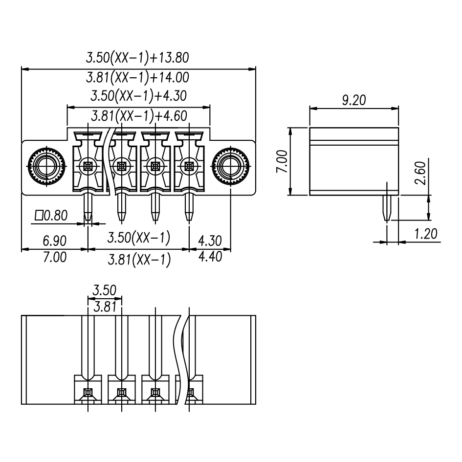 間距: 3.5 mm/3.81 mm